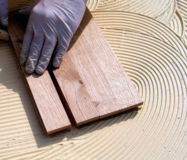 Adhesivo orgánico mineral eco-compatible de elevada elasticidad para la colocación de alta resistencia de parquet