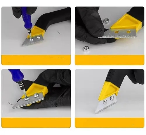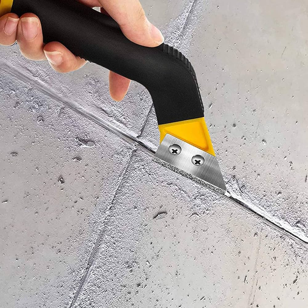 Utensilio manual para la eliminación y limpieza de los espacios de las juntas entre baldosas.